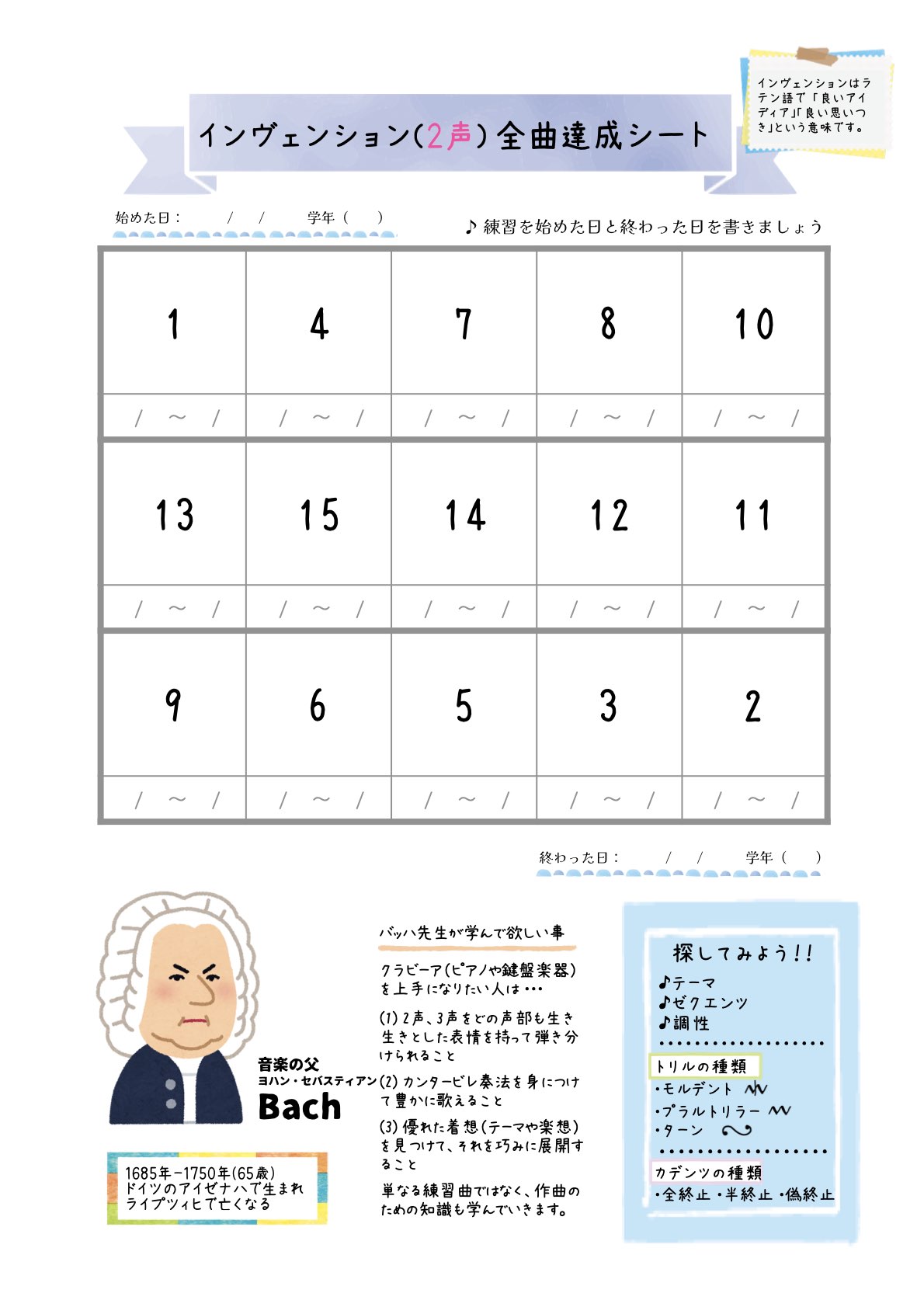 弾けた曲にシールを貼り、生徒さんのモチベーション持続にお役立てください。